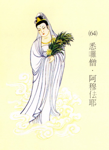 “悉啰僧阿穆佉耶”:是梵语。这一句咒的意思,要分开来翻译。本来这个“啰”字,一般人都读“悉啰(拉)僧”。这是错误的。依照《大藏经》里边的音义,应该读“悉啰(鲁)僧”。悉啰僧,意思是“成就、爱护”,爱护一切众生。