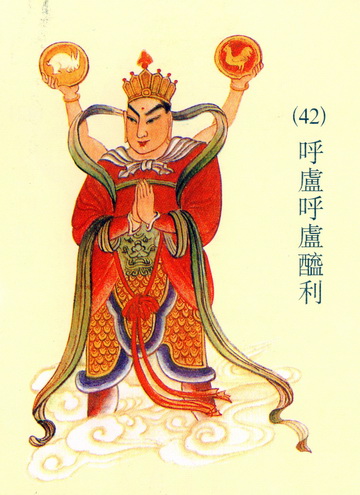 “呼嚧呼嚧酰利”:这一句也是梵语;翻译过来叫“作法无念”,又叫“作法自在”。前边是作法如意,这是作法无念。那个如意,还有一个意;现在无念,连一个念也没有了,作法没有一切的念。有一念,就有妄想,你没有念,就没有妄想;没有妄想,所以就作法自在,变成观自在。
