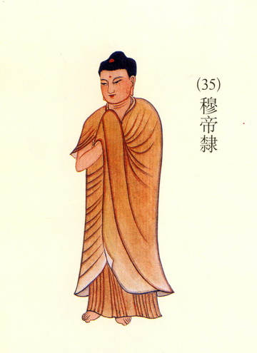 “穆帝隶”:就是佛的杨枝手眼。什么叫杨枝手眼?就是观世音菩萨拿杨柳枝的手。你看见观世音菩萨一只手拿着杨柳枝,一只手就拿着净水瓶;杨柳枝沾净瓶的水,来洒给一切的众生。沾的净水,和普通的水不同。怎样子呢?这个净水,叫甘露水;甘露水洒给一切众生,能令众生得到很多种的好处,可以解除众生的饥饿,得到一切的清凉。