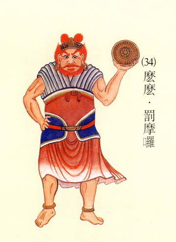 “罚摩啰”:这一句是大的降魔金刚,手里拿着一个金轮。什么叫大的降魔金刚呢?因为这一位金刚,身可以变成好像须弥山那么大。